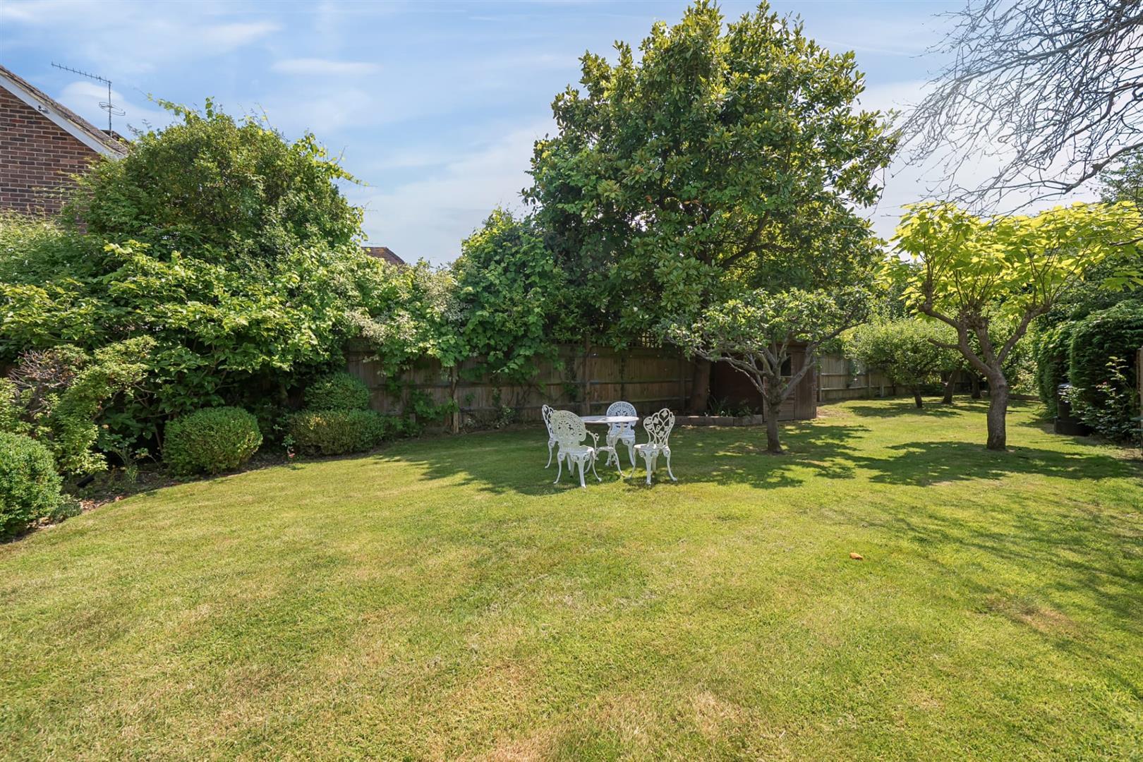 The large secluded south-facing rear garden is mainly laid to lawn with shrubs and apple trees. The front garden is laid to lawn with mature hedges, shrubs and driveway parking.