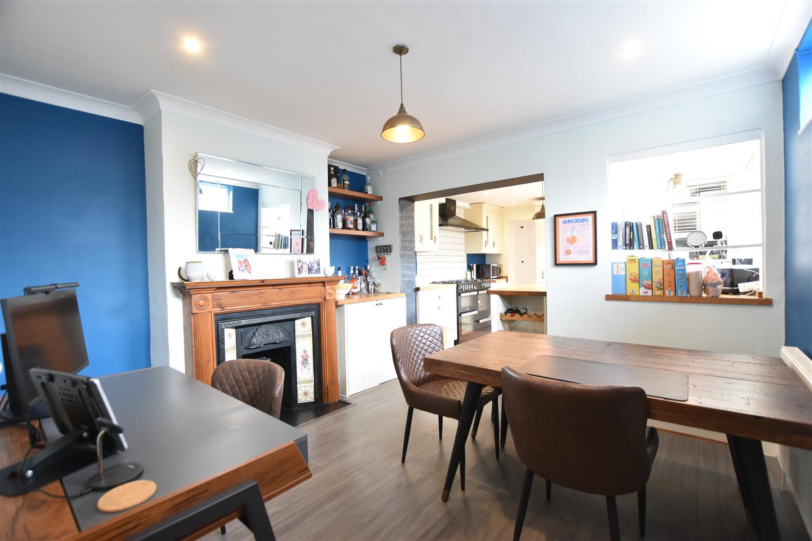 You enter into a cosy lounge, filled with natural charm and perfect for relaxing at the end of the day. Moving through, the layout opens into a comfortable dining room, ideally positioned for family meals or entertaining guests. From here, the space leads naturally into the fitted kitchen.