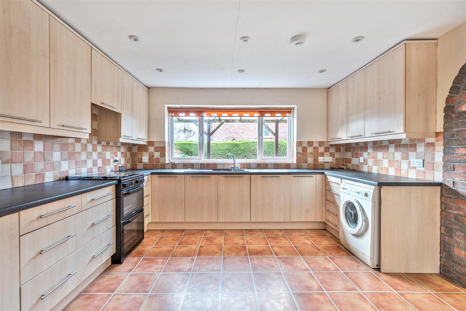 The fitted kitchen features an attractive archway opening into a bright breakfast room.