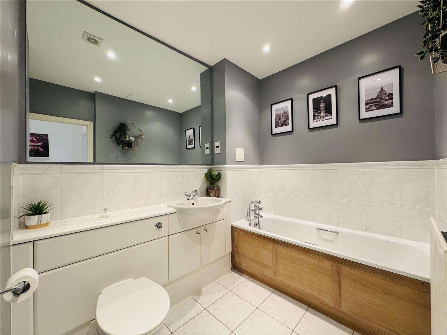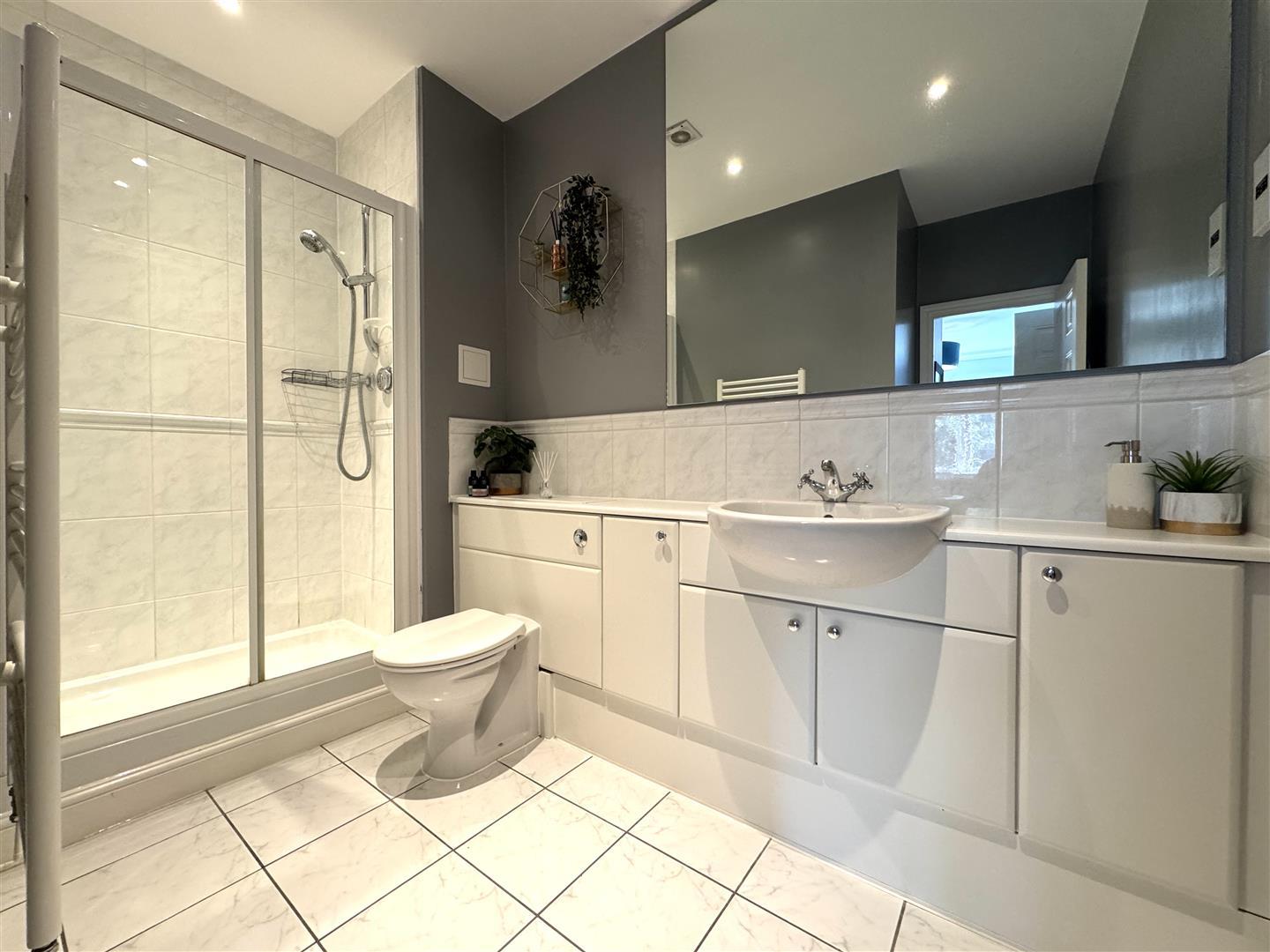 This well-located home features two generous double bedrooms, each benefiting from fitted wardrobes. The primary bedroom enjoys the added luxury of a modern en-suite shower room, while there is a separate spacious family bathroom.