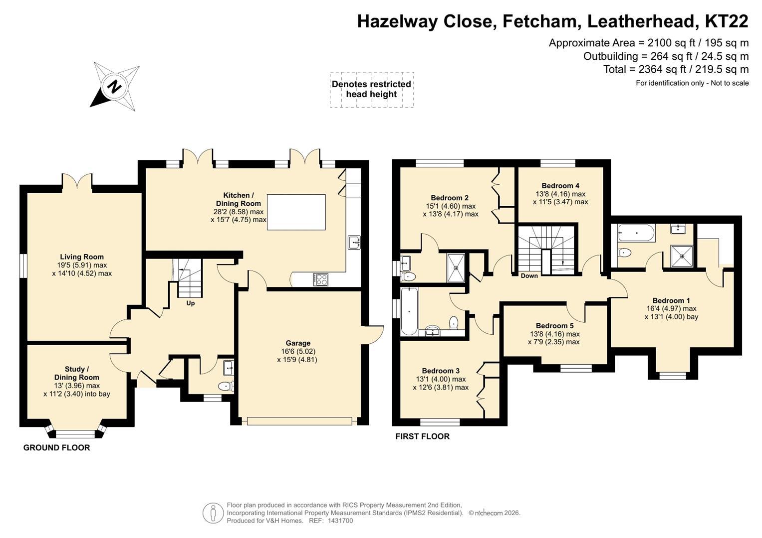 V&H Homes are proud to present this exceptional five double bedroom detached residence, built by Shanly Homes in 2004 and set within an exclusive gated development of just five homes in the heart of Fetcham Village. Offering over 2,100 sq ft of beautifully arranged accommodation, together with a substantial outbuilding, the property is available with no onward chain.